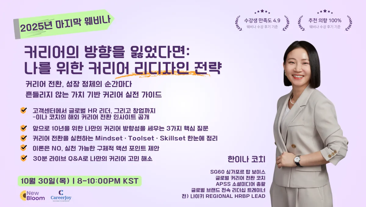 고객센터에서 글로벌 HR 리더, 그리고 창업까지–이나 코치의 해외 커리어 전환 인사이트 공개